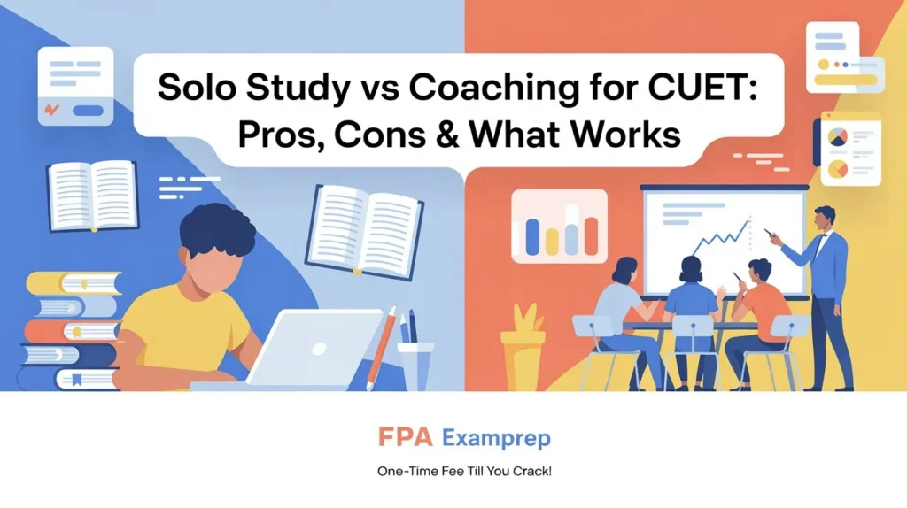 At FPA EXAMPREP, we’ve mentored thousands of CUET aspirants and understand the unique challenges students face. In this guide, we’ll break down the pros and cons of both solo study and coaching so you can decide what works best for your success.