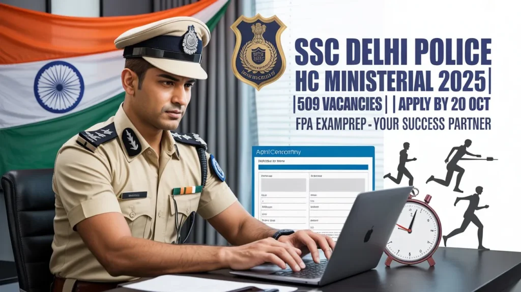 The SSC Delhi Police Head Constable (Ministerial) Recruitment 2025 has been officially announced by the Staff Selection Commission (SSC), opening doors to 509 prestigious government job opportunities in the Delhi Police force. This recruitment drive targets 10+2 qualified candidates aspiring for a stable career in law enforcement with attractive salaries, job security, and growth prospects. If you’re searching for the latest updates on SSC Delhi Police HC Ministerial 2025 notification, application process, eligibility criteria, physical standards, syllabus, or exam pattern, this comprehensive guide from FPA ExamPrep covers everything in detail.
